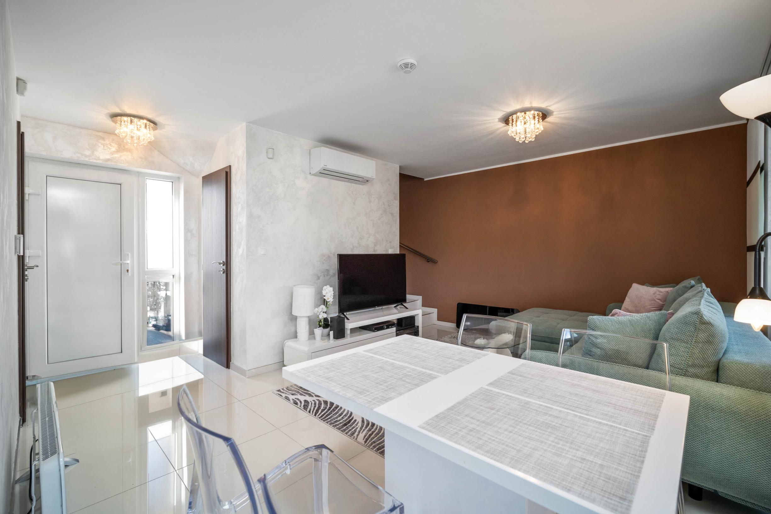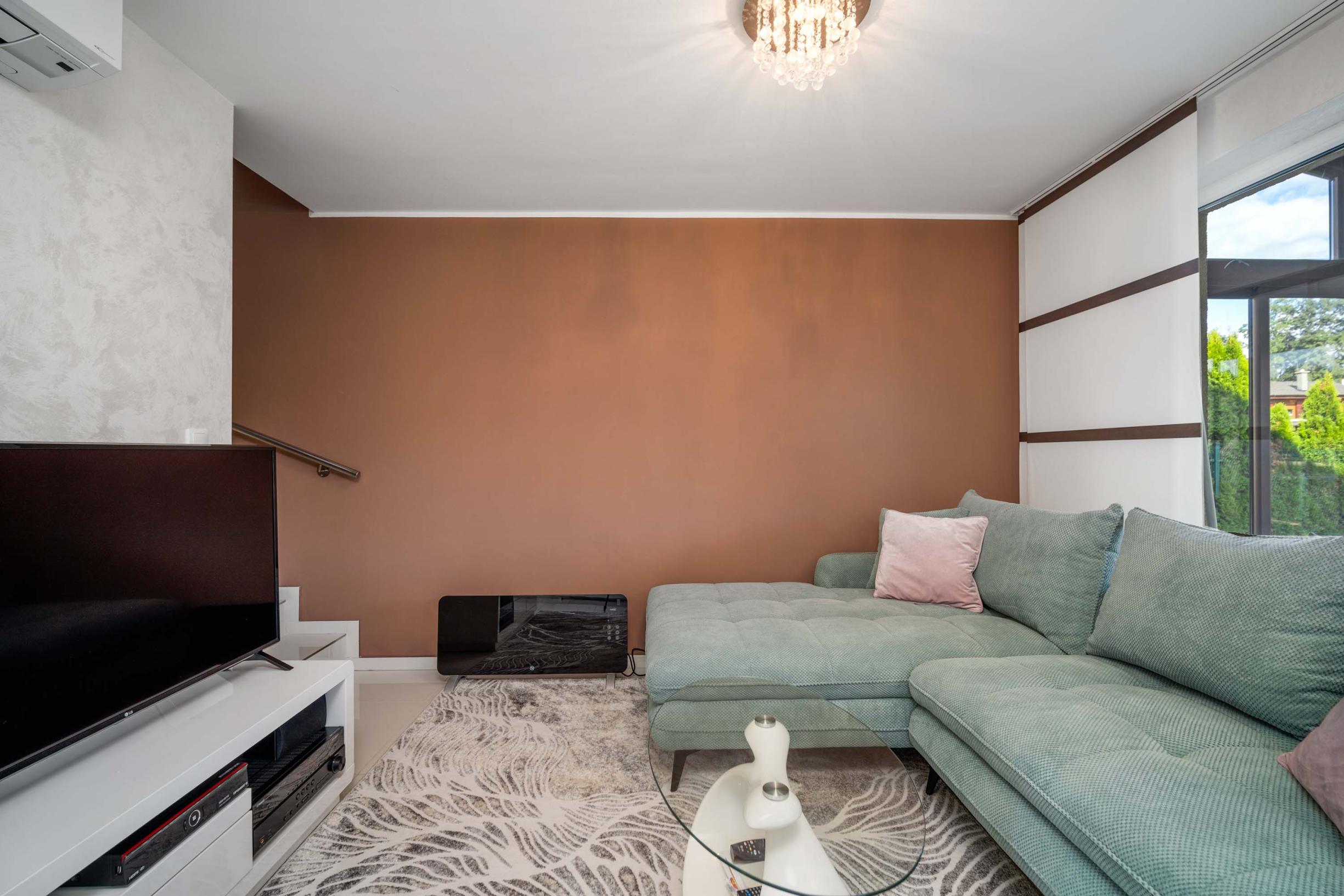 spacious living room connected to the kitchen and dining area