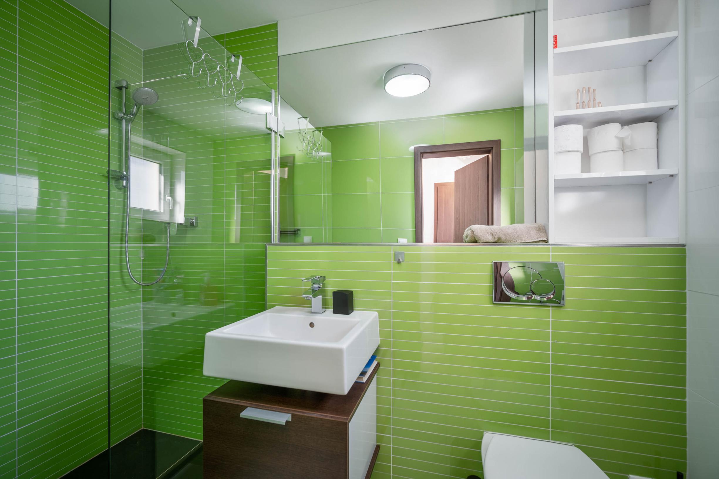 bathroom with shower, washbasin and WC