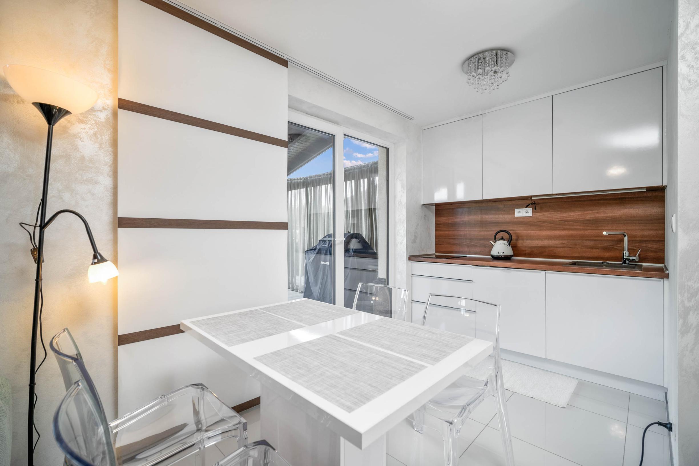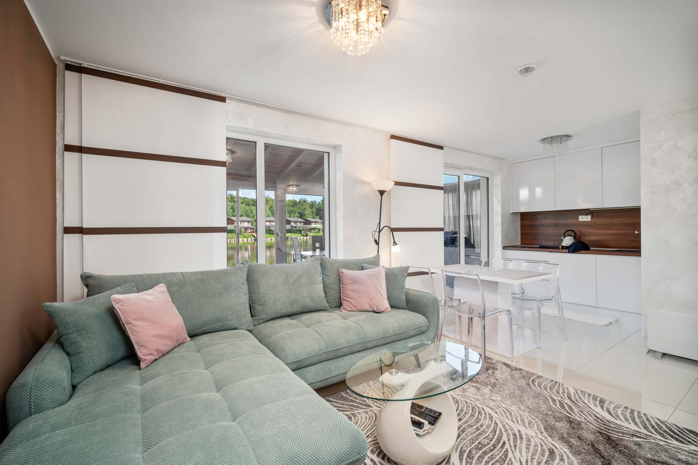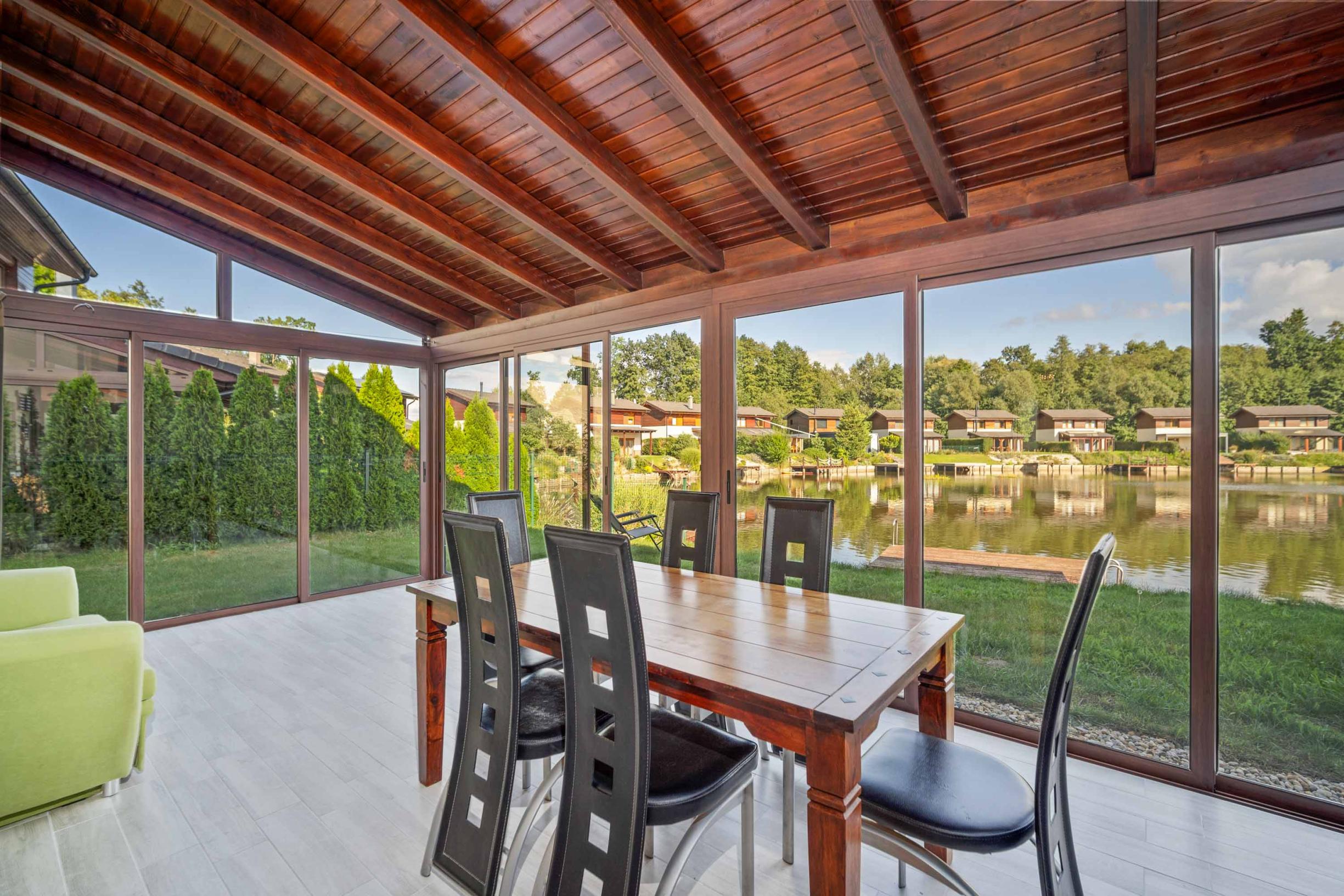 access to a large glazed terrace with a lovely lake view